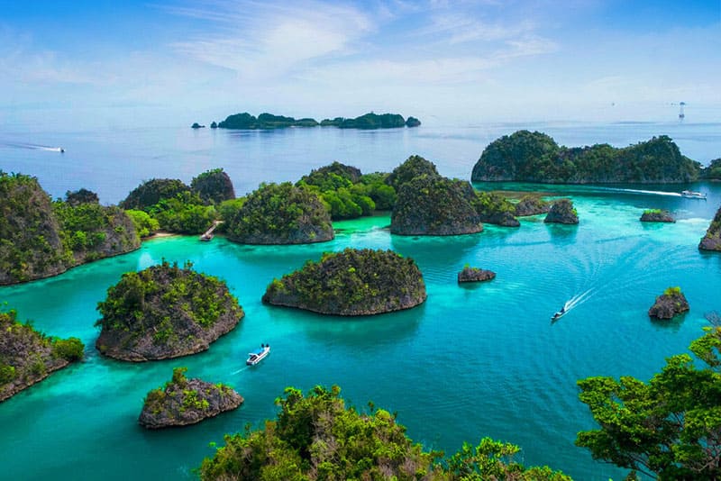 Raja Ampat es un archipiélago ubicado en la zona de Papúa Occidental y cuenta con más de 1500 islas. Se encuentra ubicado en el centro del triángulo de coral, y es conocido como una de las zonas con mayor biodiversidad marina de Indonesia y del mundo. Es importante destacar que Raja Ampat se encuentra situado en un parque marino, que se encuentra protegido y donde diferentes animales como tiburones, mantas, pulpos mimo, cangrejos orangutanes, peces pipa, dudongos y tortugas marinas vuelven a gobernar el reino marino sin preocupaciones.
