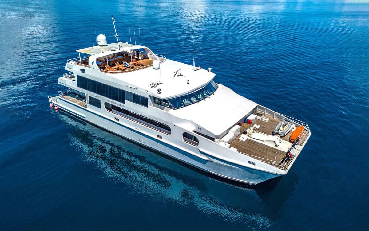 La mejor manera de apreciar estas bellezas inigualables es en un vida a bordo, y hay pocos tan acogedores o espaciosos como el Solitude Adventurer, un catamarán de buceo de aluminio de 36 metros, construido en el año 2000, y renovado por completo en 2017, capaz de atender hasta un máximo de 18 invitados en una comodidad sin igual.