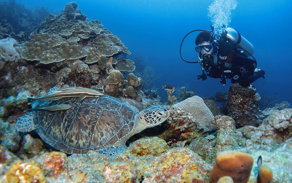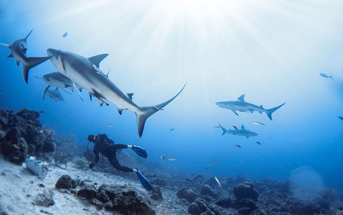 Además, existe la posibilidad de realizar una de las aventuras mas emocionantes del buceo: una inmersión con tiburones de arrecife caribeño. Un buceo apasionante rodeado de entre 8 y 15 tiburones que sin dudas no olvidarás.
